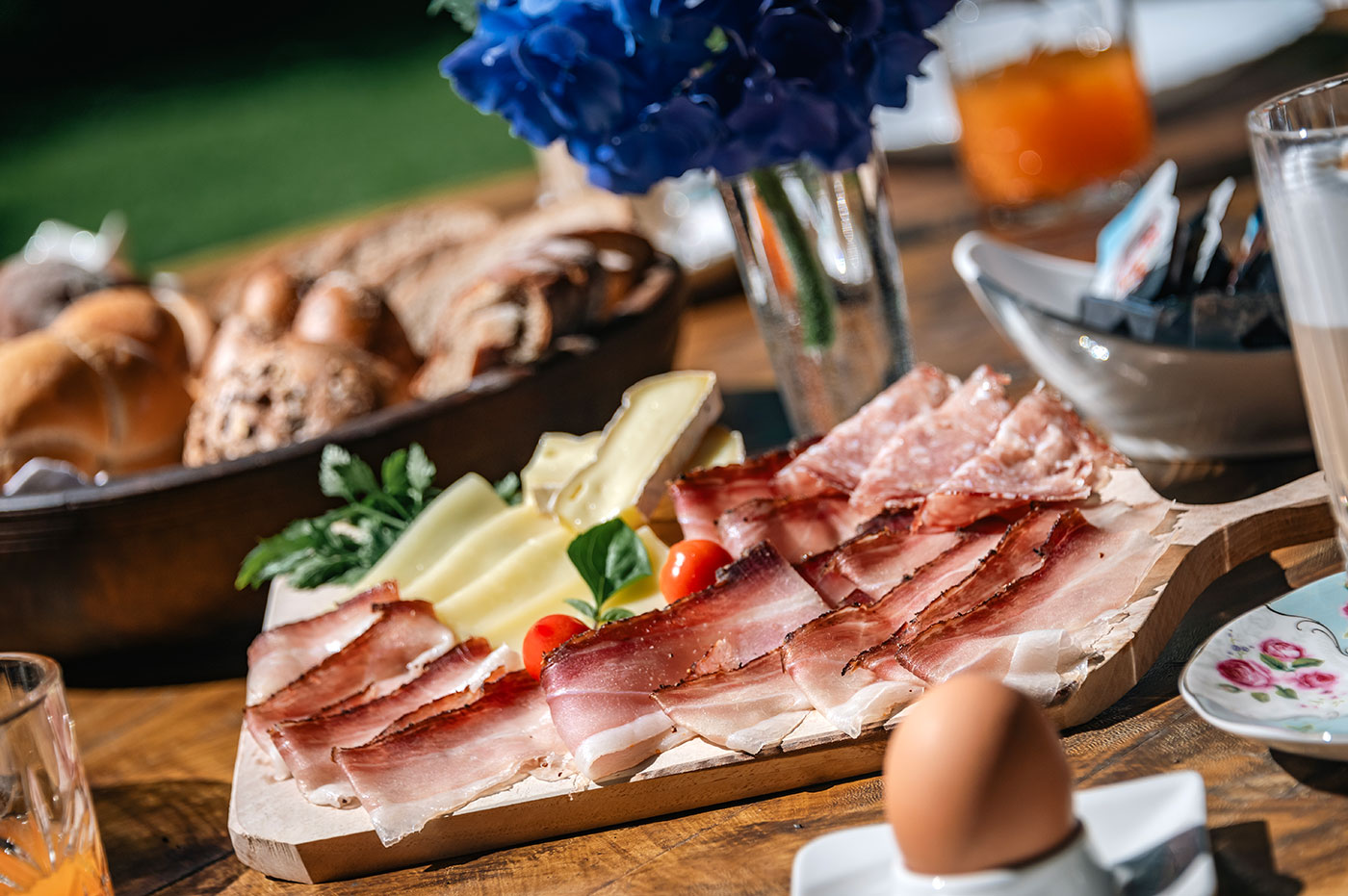 Ein reichhaltiges Frühstück erwartet Sie: Genießen Sie heiße Getränke wie Kaffee, Tee und Kakao, begleitet von einer Auswahl hausgemachter Säfte und Orangensaft. Dazu servieren wir Ihnen frische Eier, cremigen Joghurt und verschiedene hausgemachte Marmeladen. Köstliche Butter, Honig und Nutella stehen bereit, ebenso wie knuspriges Müsli. Eine Auswahl an regionalen Brotsorten, saisonalem Obst und Gemüse – teils aus eigenem Garten – sowie feinste Wurst- und Käsespezialitäten aus Südtirol ergänzen das Angebot. Frisches Gebäck, wie knusprige Frühstücksgipfel, rundet das Frühstück perfekt ab.